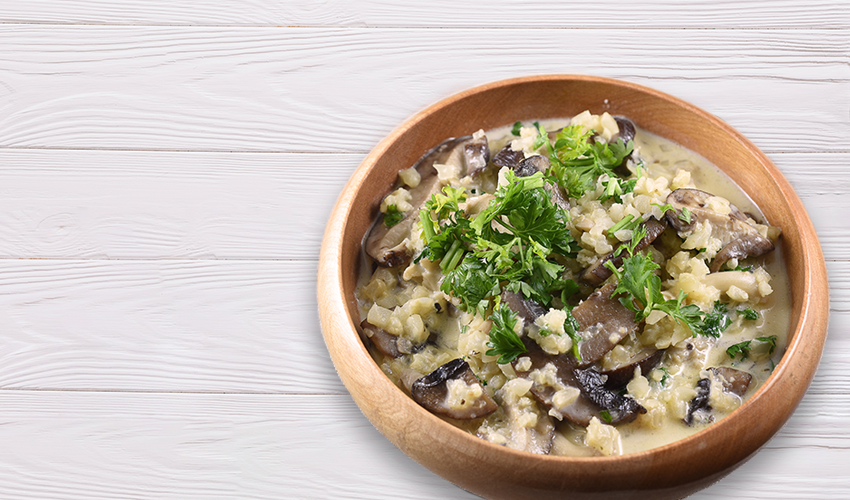 La final se adaugă laptele vegetal, sare și piper – după gust. Se mai lasă la foc mic, aproximativ 3 minute.